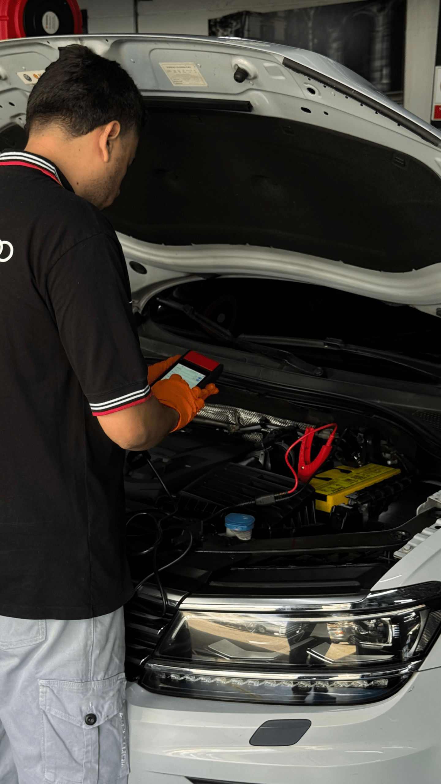 • Escaneo con tester de batería profesional (CCA y voltaje en reposo)
